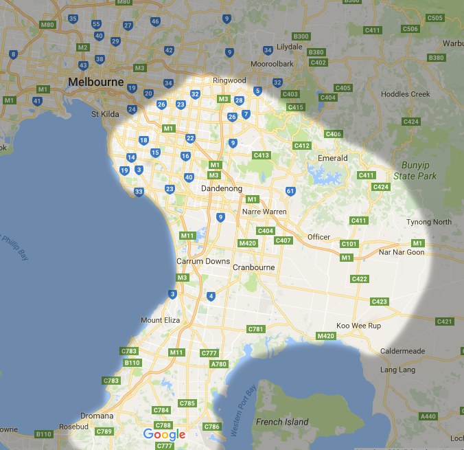 We service customers in Melbourne's South East, as shown in the highlighted area below